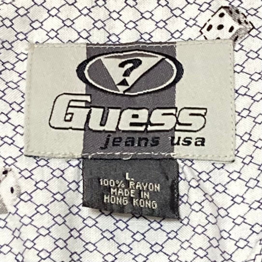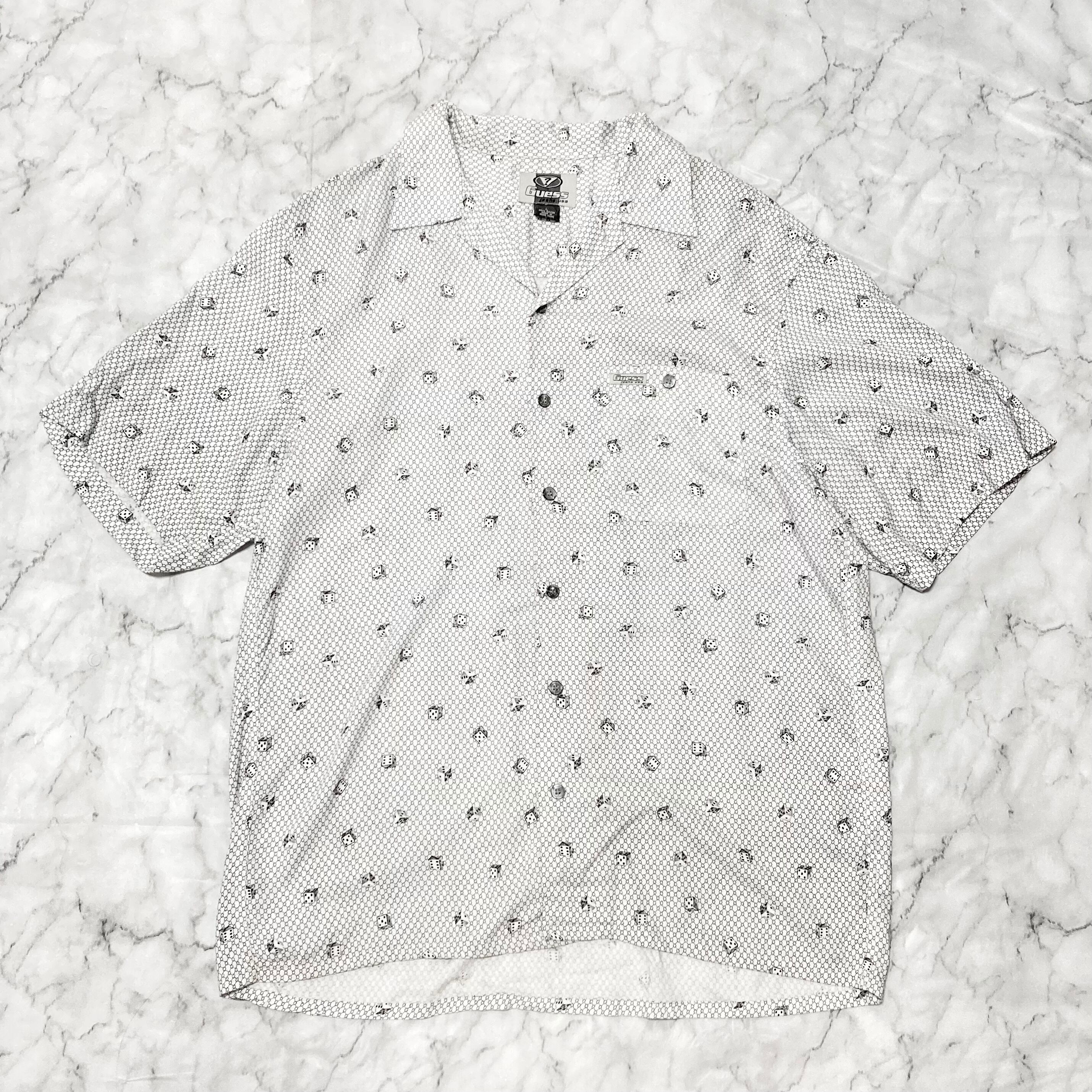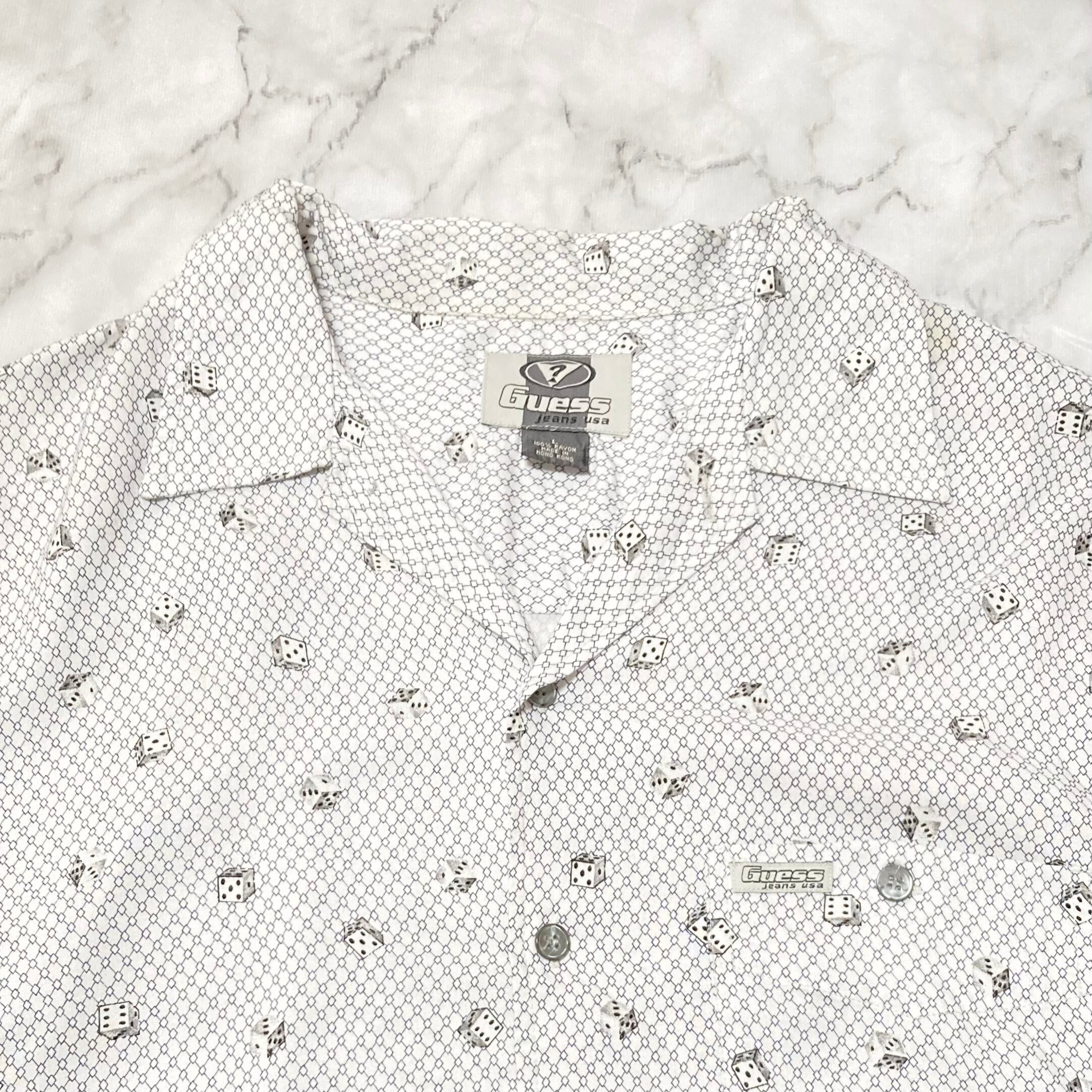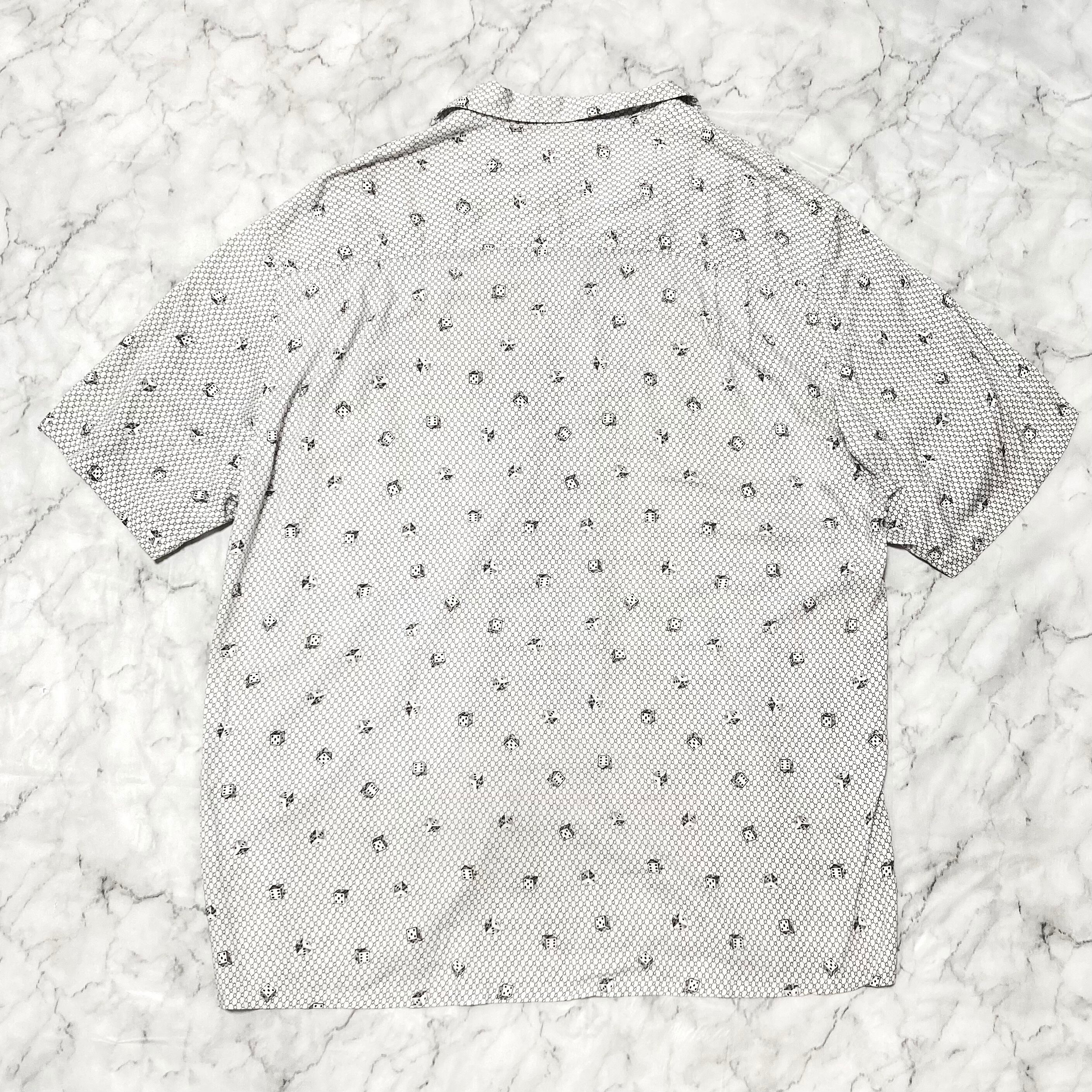 【90s GUESS】ダイス 総柄 レーヨン 半袖 オープンカラー シャツ