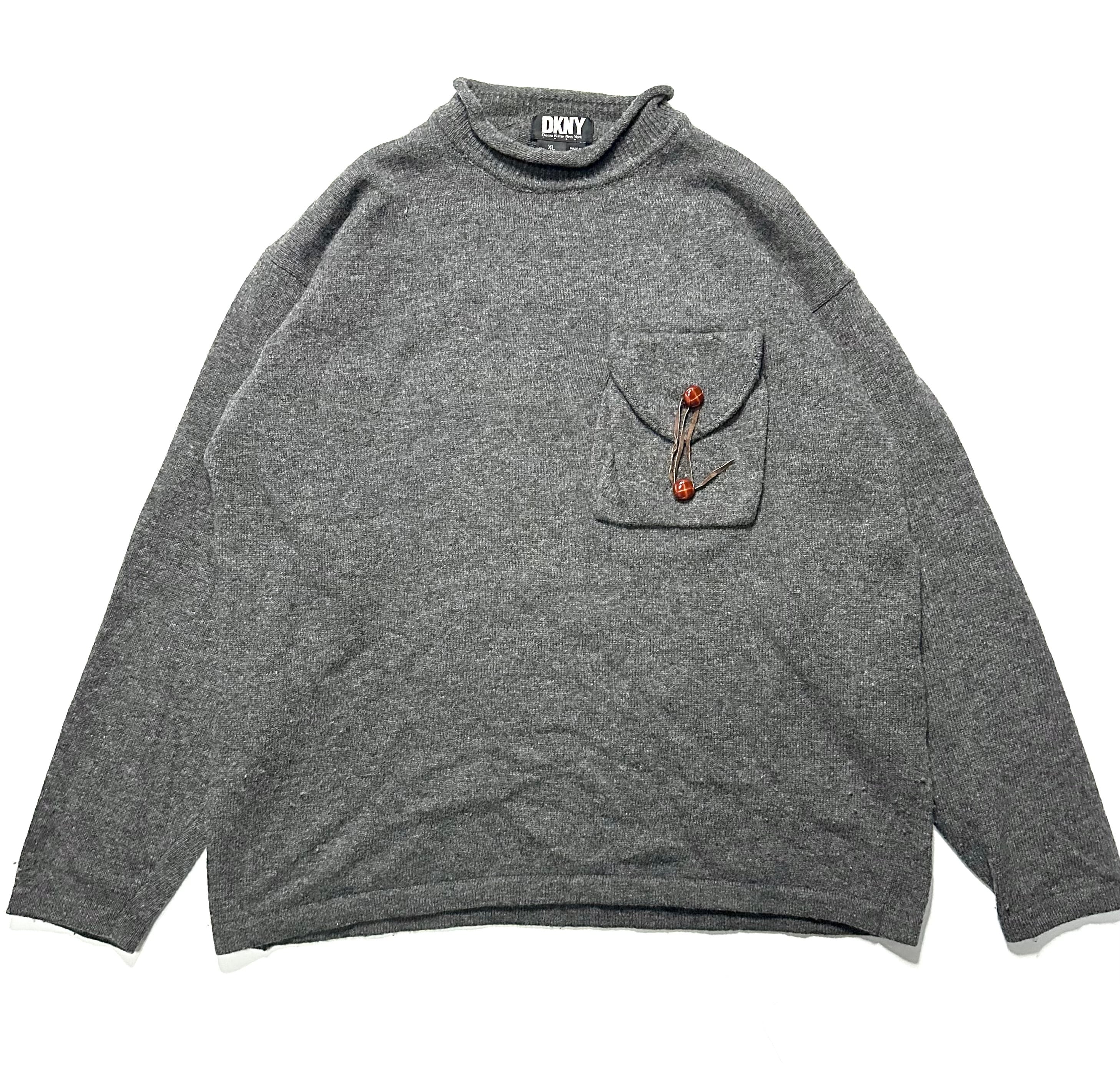 【90s】【DKNY】 ロールネック 立体ポケットラムウール ニット セーター プルオーバー