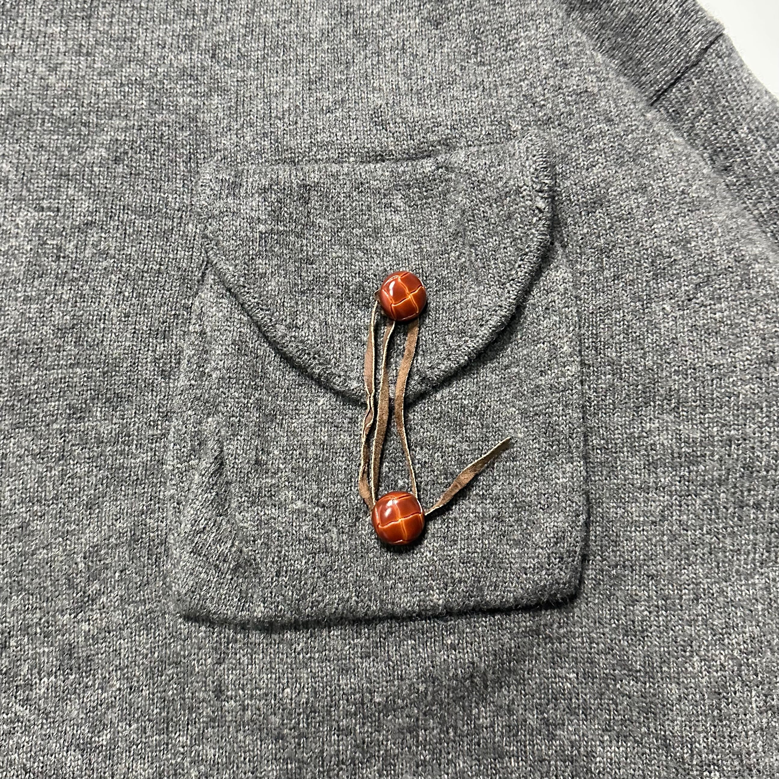 フロントのくるみボタン付きの立体ポケットが特徴的です。