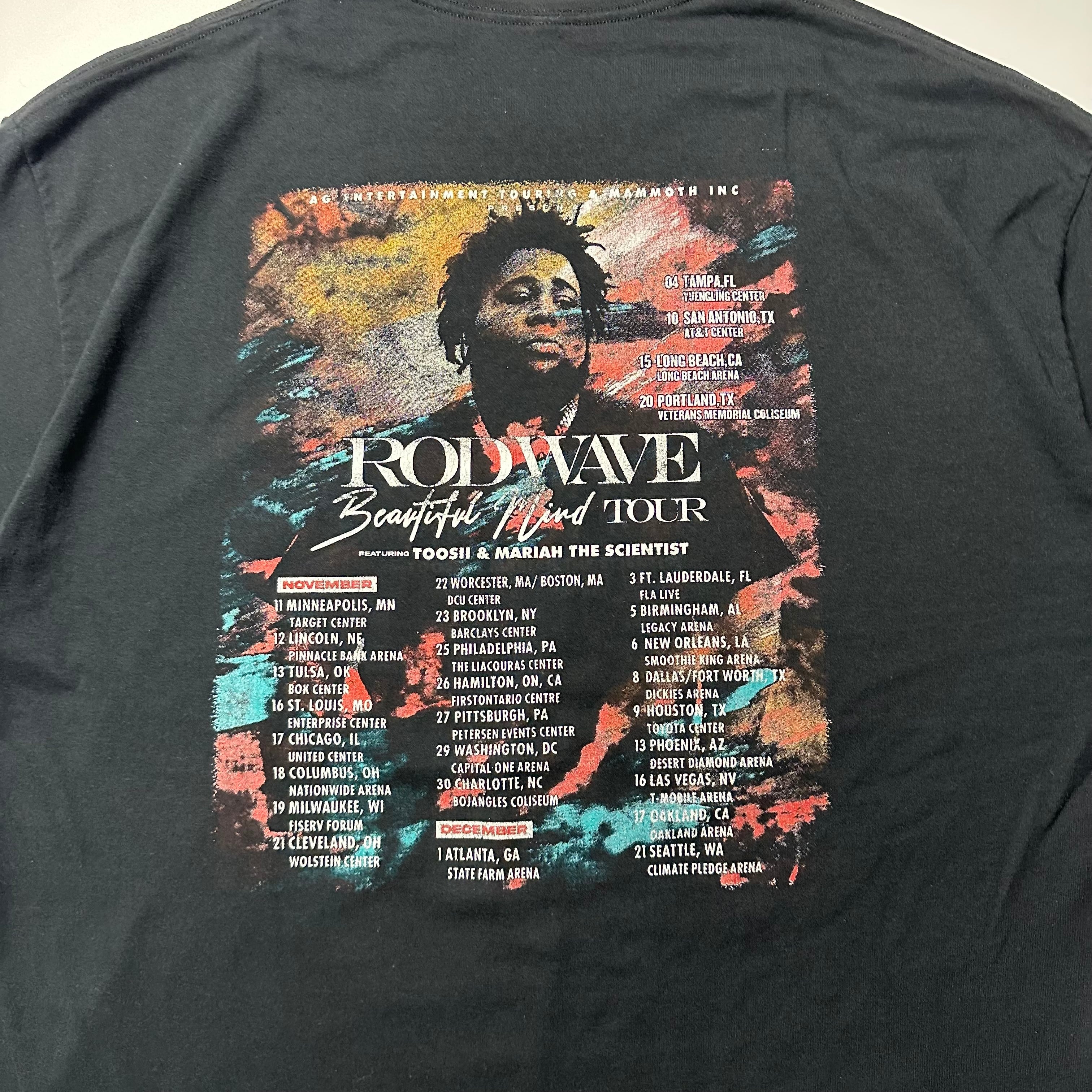 USヒップホップシーンで絶大な人気を誇る Rod Waveの2022年に行われた「Beautiful Mind Tour」オフィシャルツアーTシャツです。