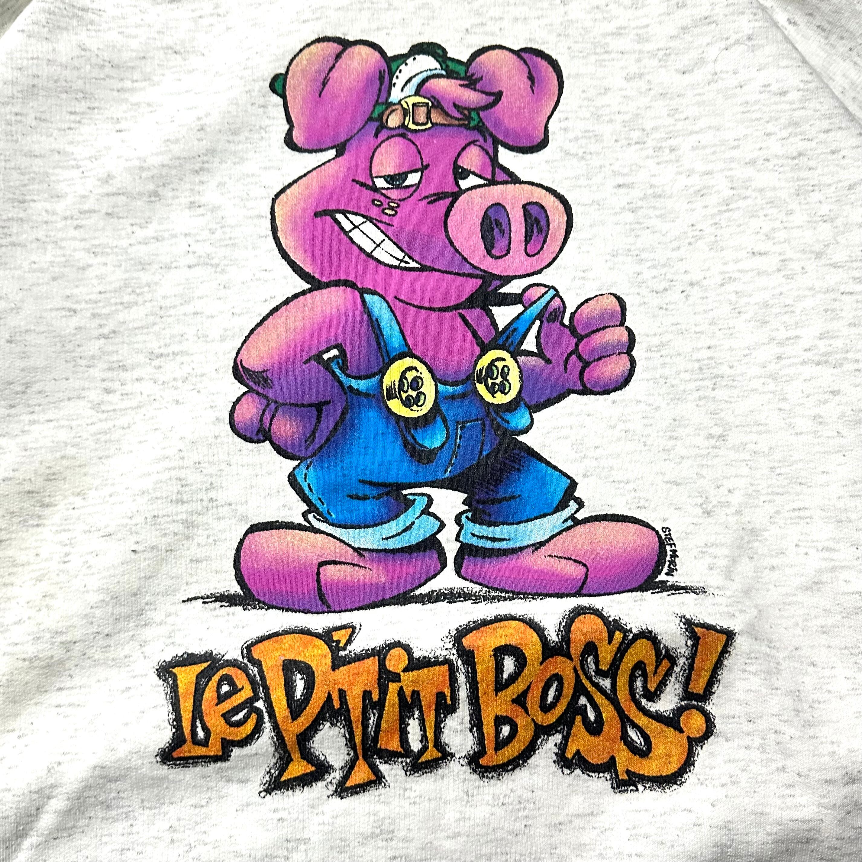 カナダ製のHumeur Designのアイテムで、フロントには豚のキャラクターとフランス語でLE P'TIT BOSS(小さなボス)がプリントされています。
